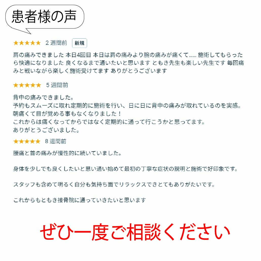 豊橋市の腰痛・肩こり専門|仕事帰り21時まで受付のともき接骨院